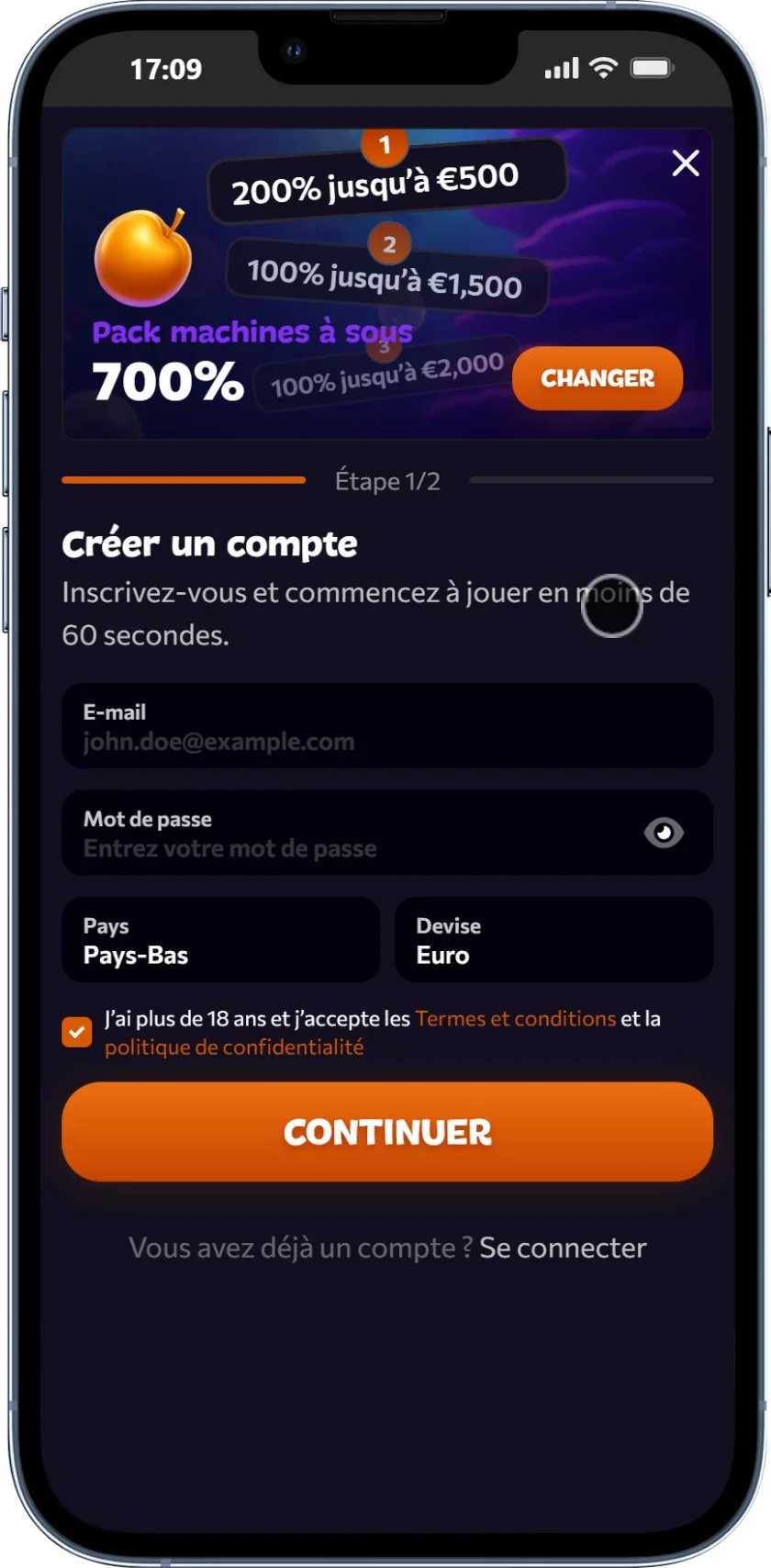 - Remplissez les différents champs (code promotionnel, email, mot de passe, numéro de téléphone).